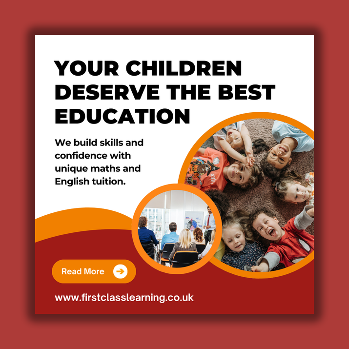 For First Class Learning in Nottingham, a tuition centre dedicated to building student confidence, bridging knowledge gaps, and fostering independent study skills, a comprehensive suite of promotional and print projects was developed, including social media posts, promotional leaflets, email newsletters, educational materials, and customised reward charts.